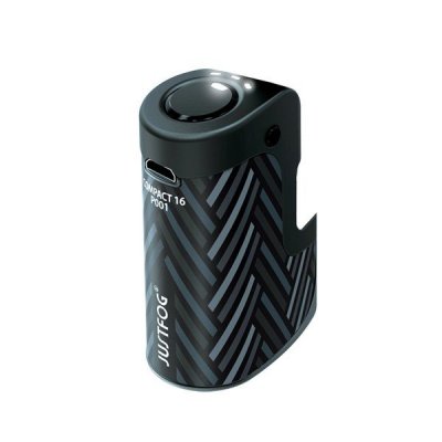 Justfog Compact 16 solo batteria è maneggevole e compatta. Ha la possibilita' di impostare il voltaggio con volt da: 3.4V - 3.8V - 4.2V. Visualizzazione della batteria rimanente tramite tre colori: bianco (100-65%), blu (65-30%), rosso (meno del 30%).